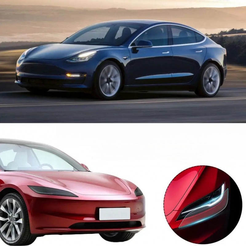 Tesla Model 3 Highland Black TPU Headlight & Tail Light Protection Film