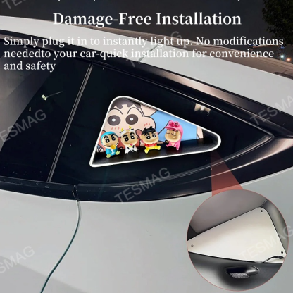 Stylish LED Interior Enhancement: Transform your Tesla's interior with our rear triangle window LED light kit, featuring adorable Crayon Shin-chan figures. This vibrant LED display adds a fun and eye-catching touch, making every ride more enjoyable.