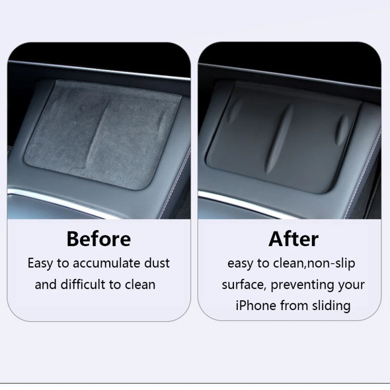Efficient Dust Protection: The surface of the original center console's charging area is flocking, making it easy to accumulate dust and difficult to clean. The silicone mat has wrapped edges, which can effectively protect the center console from dust accumulation.